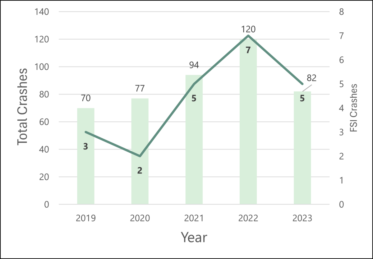 As part of the Comprehensive Safety Analysis, we're using vehicular crash data to identify high risk locations. These will be added to locations and issues identified by the public to create a High Injury Network. Once the High Injury Network is identified, we can start working on solutions to reduce risk and make travel safer.
