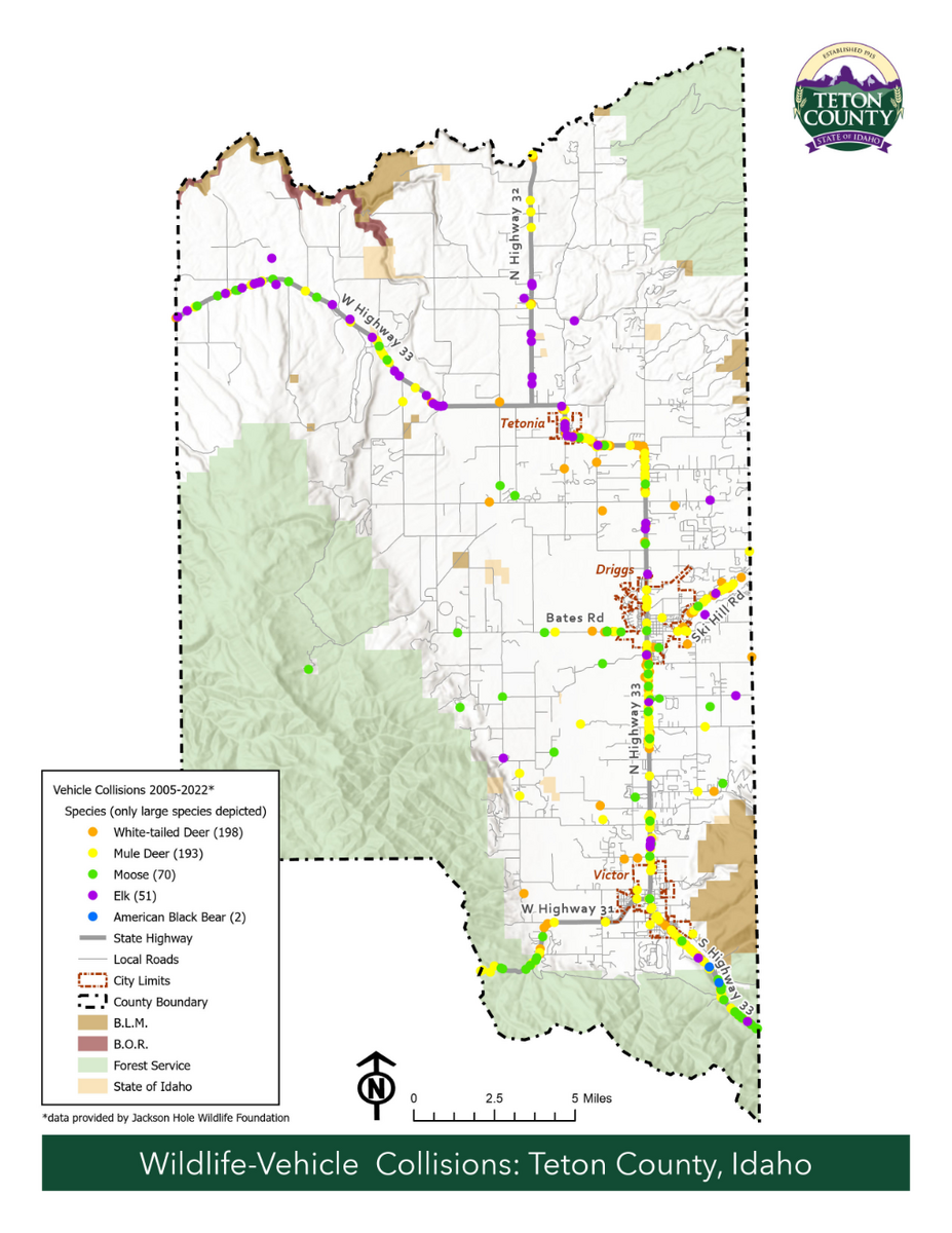 Wildlife is all around us in Teton County. While the statistics show that not many wildlife involved crashes result in fatality/serious injury for humans, protecting animals by reducing interactions with people and vehicles is an important part of this plan.